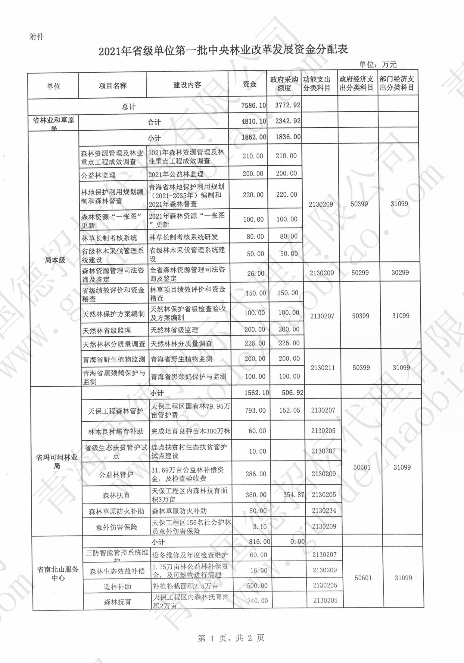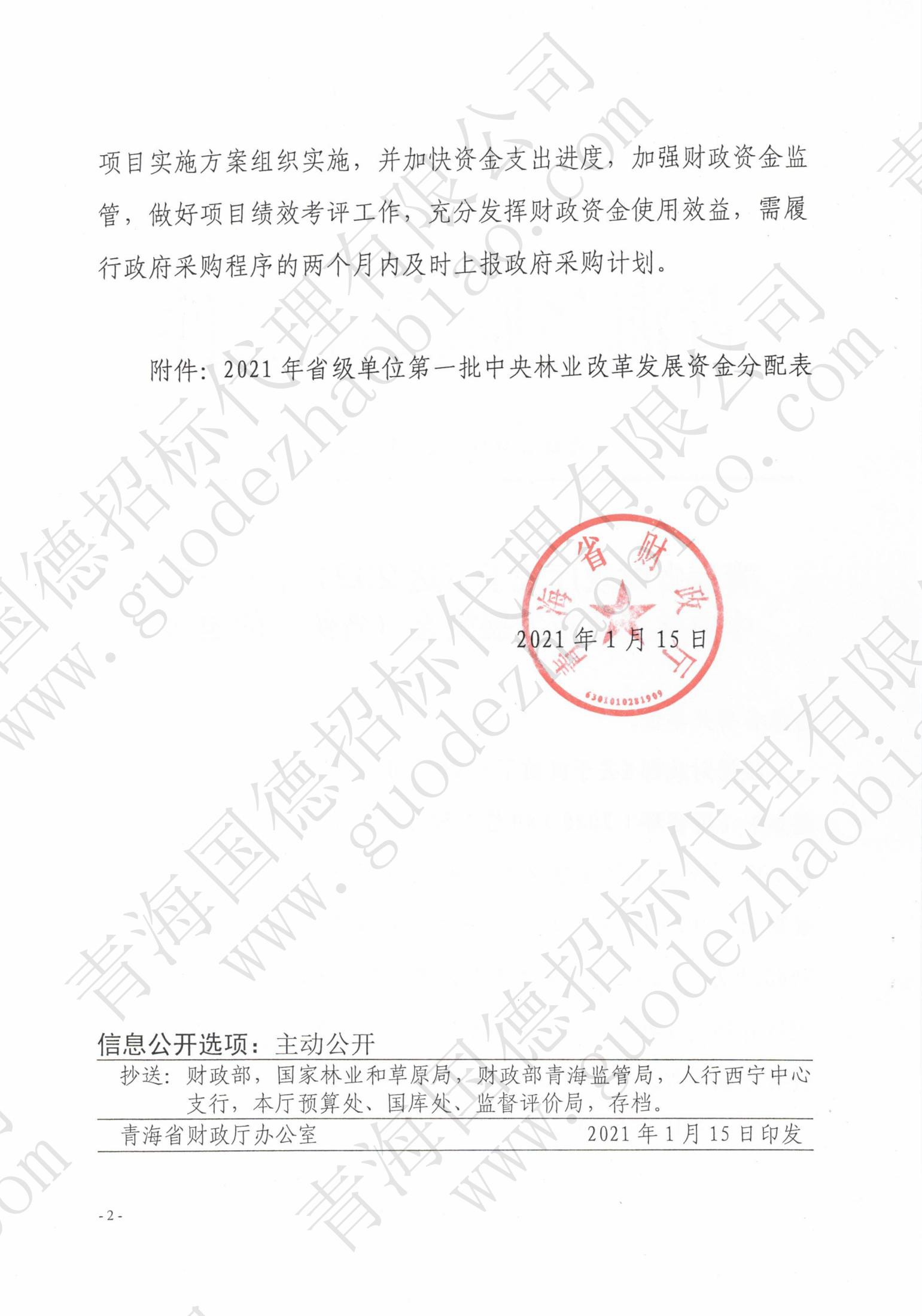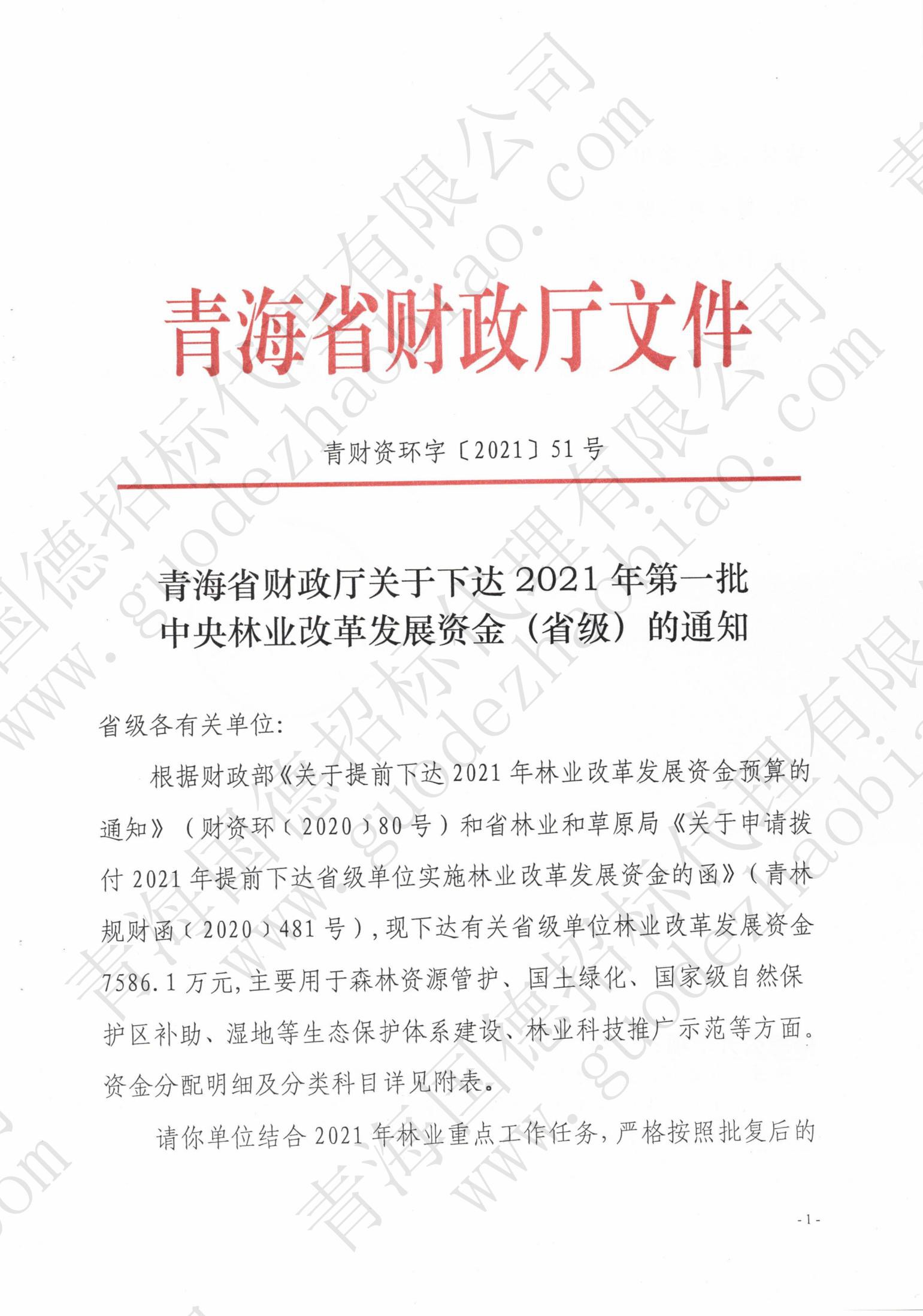 青海省財政廳關(guān)于下達(dá)2021年第一批中央林業(yè)改革發(fā)展資金(省級)的通知