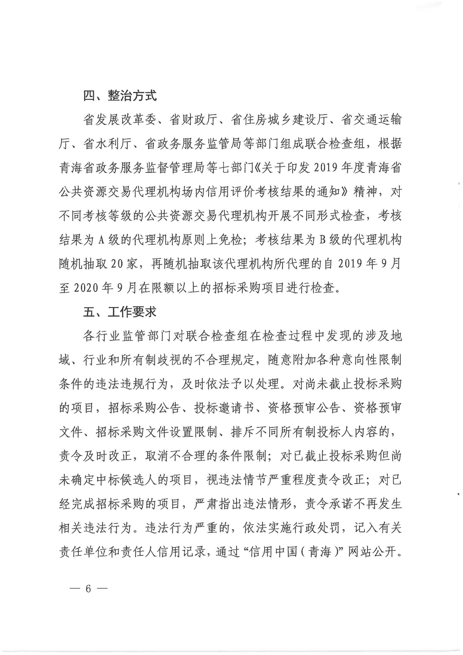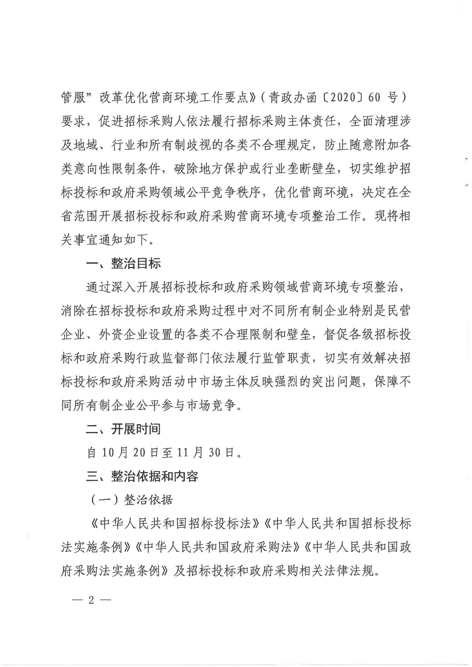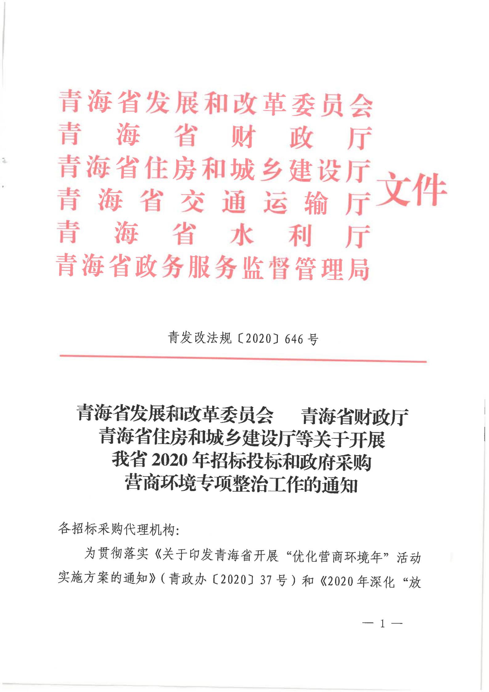 青海省發展和改革委員會青海省財政廳青海省住房和城鄉建設廳等關于開展我省2020年招標投標和政府采購營商環境專項整治工作的通知