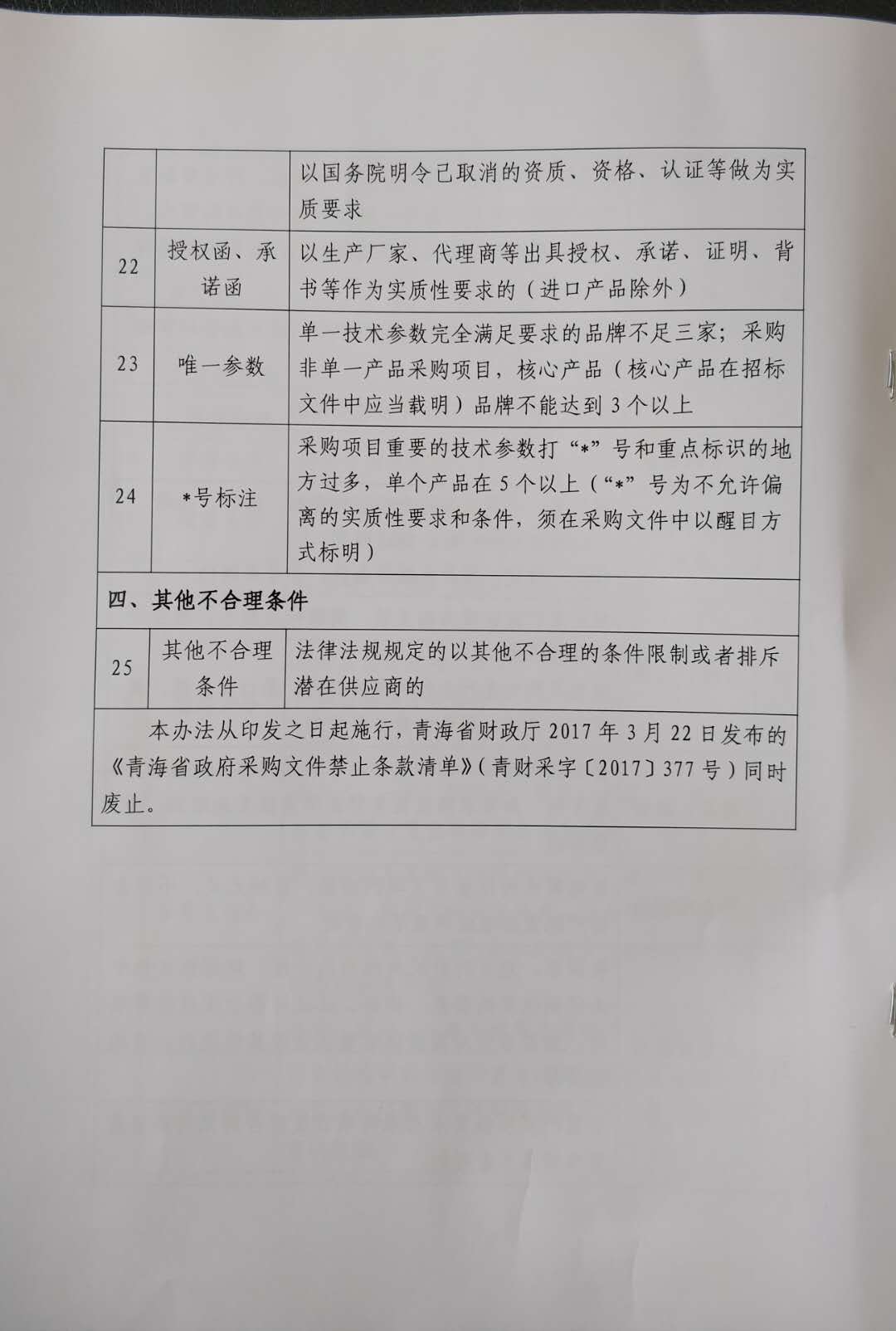 青海省財政廳關于印發《青海省政府采購文件禁止條款清單(修訂版)》的通知