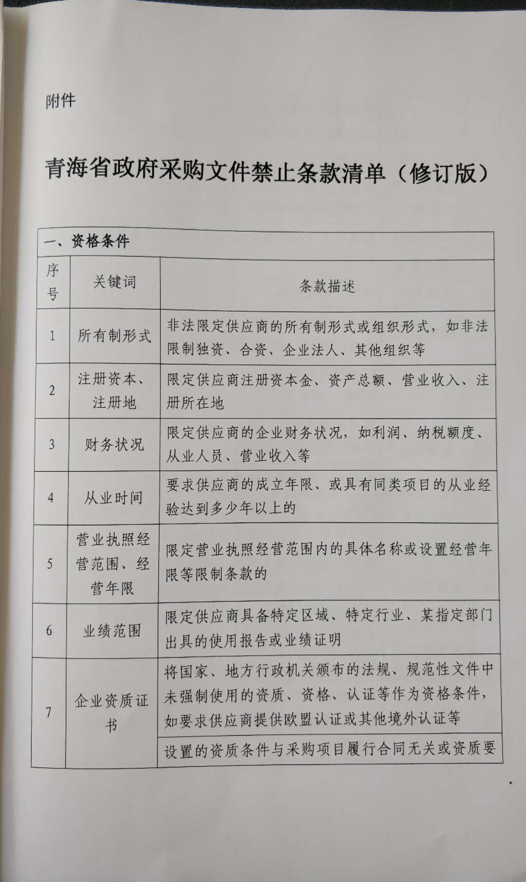 青海省財政廳關于印發《青海省政府采購文件禁止條款清單(修訂版)》的通知