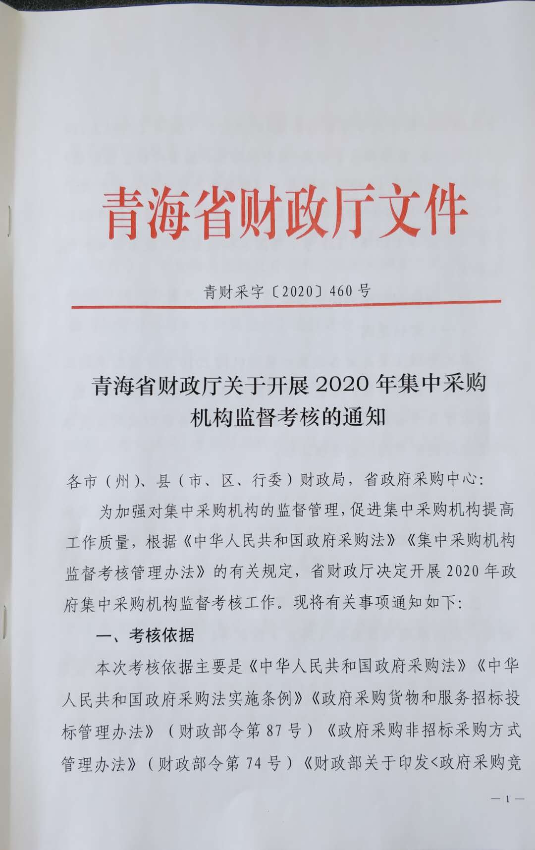青海省財政廳關于開展2020年集中采購機構監督考核的通知