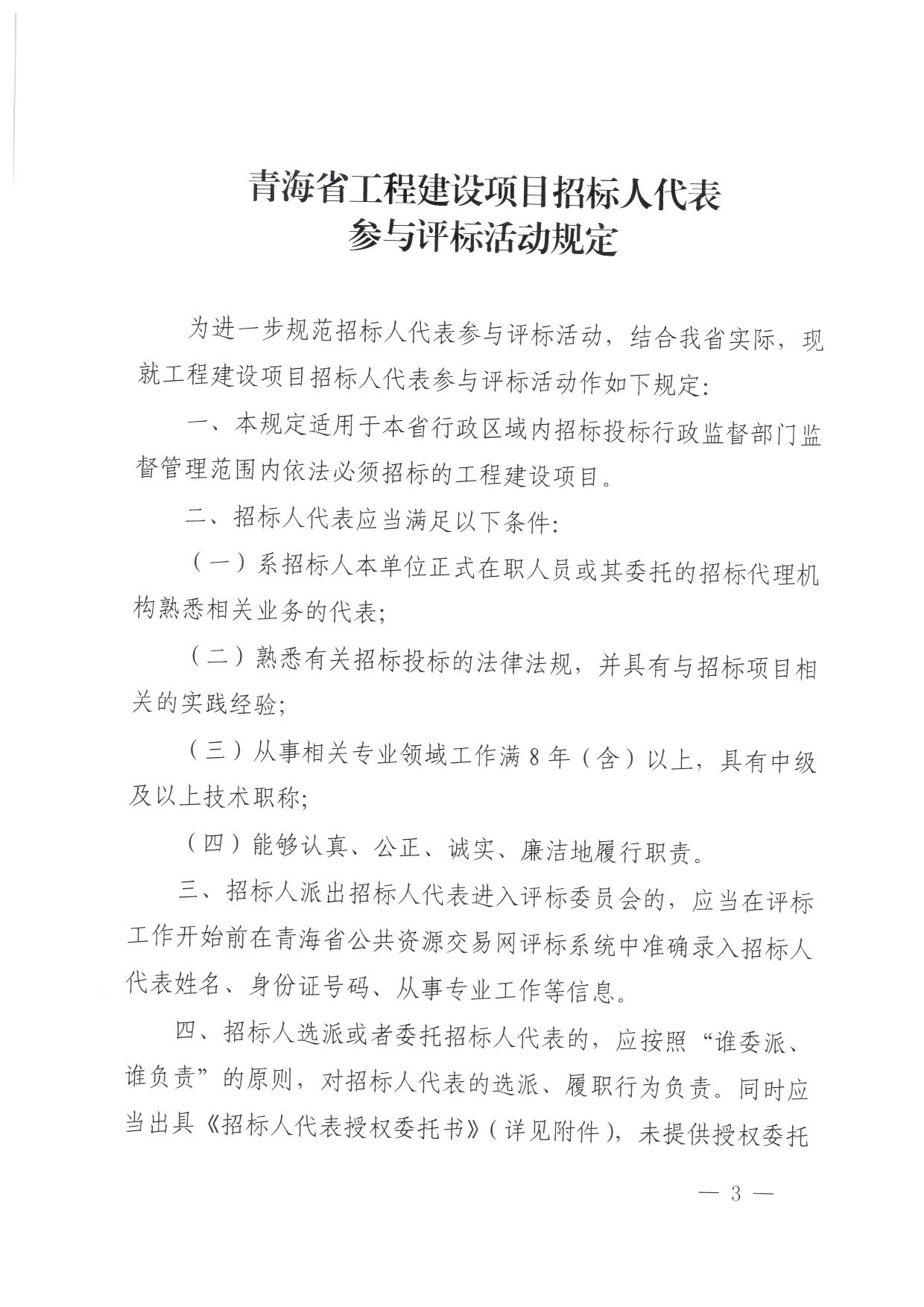 關于印發青海省工程建設項目招標人代表參與評標活動規定的通知(印發).pdf