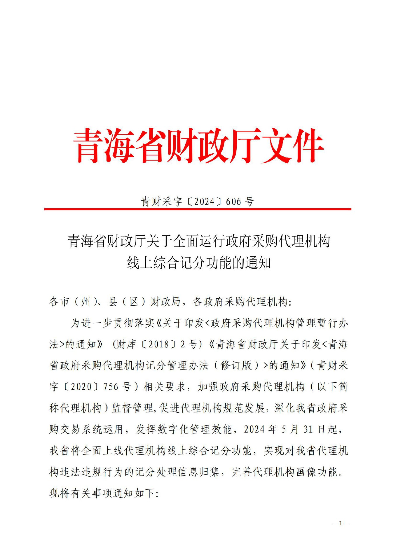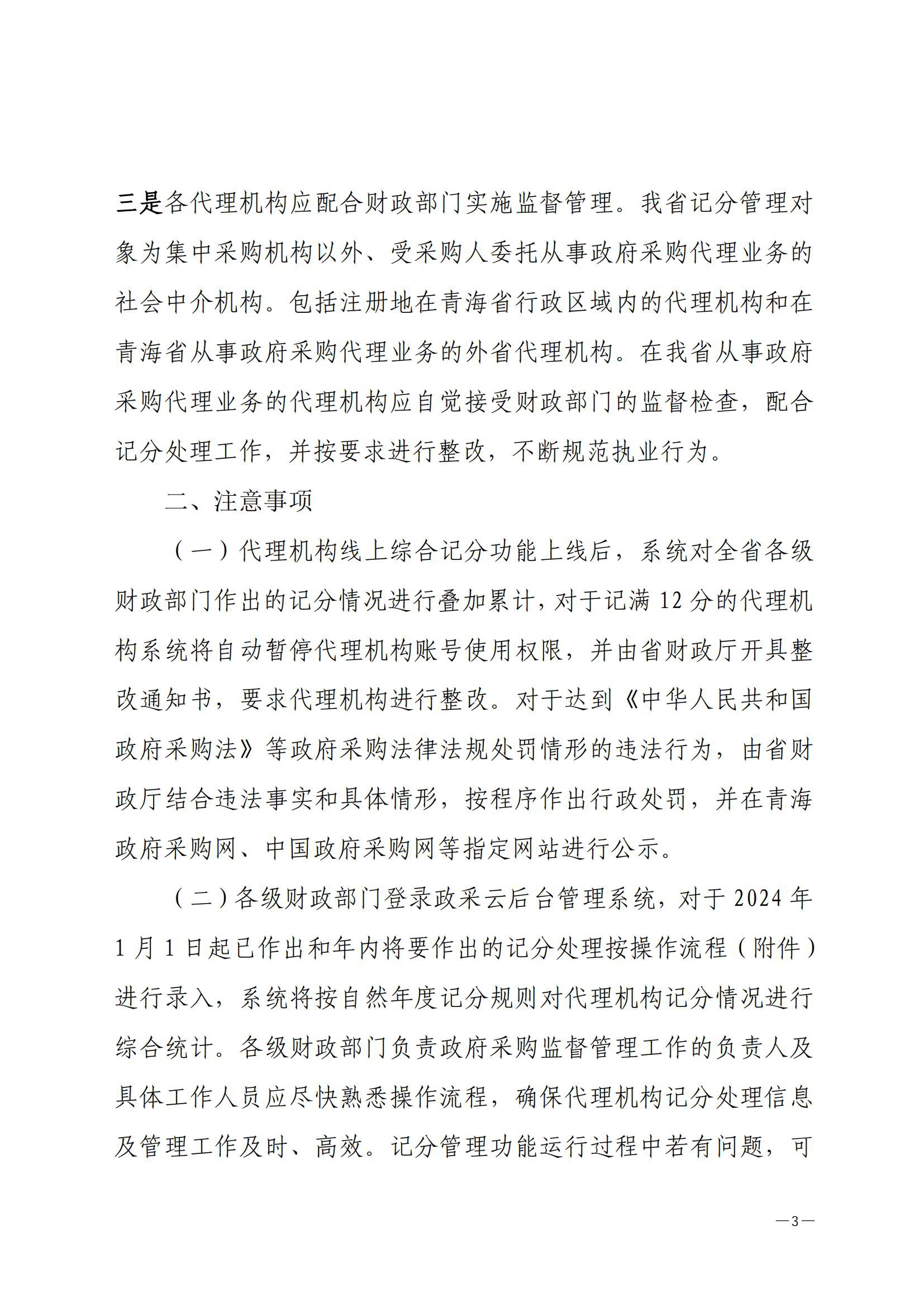 青海省財政廳關于全面運行政府采購 代理機構線上綜合記分功能的通知