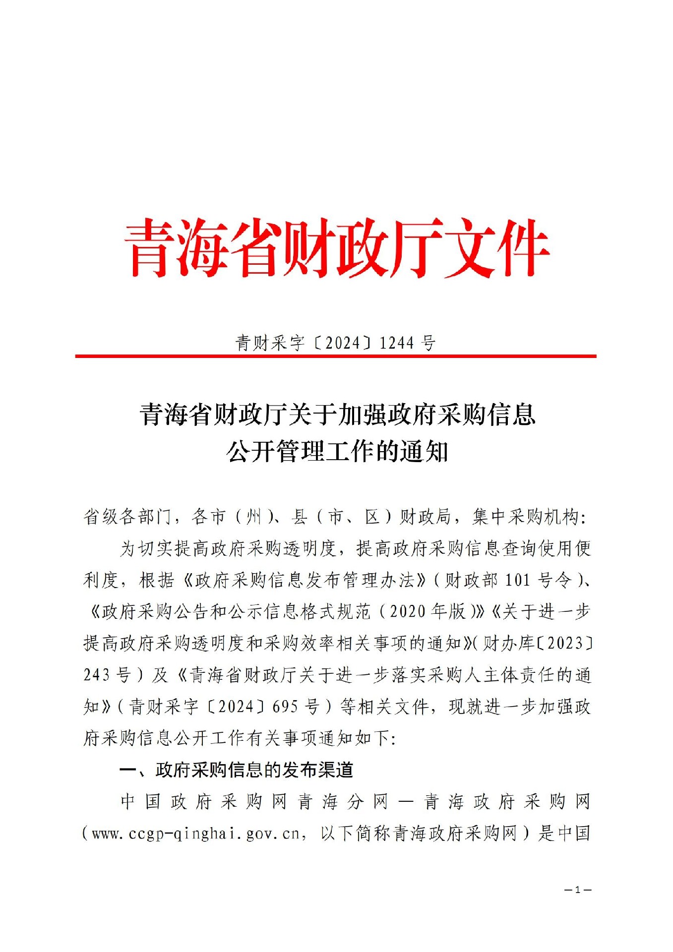 轉(zhuǎn)發(fā)青海省財(cái)政廳關(guān)于加強(qiáng)政府采購(gòu)信息公開(kāi)管理工作的通知