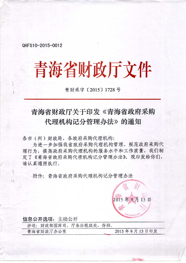 青海省政府采購(gòu)代理機(jī)構(gòu)記分管理辦法.pdf