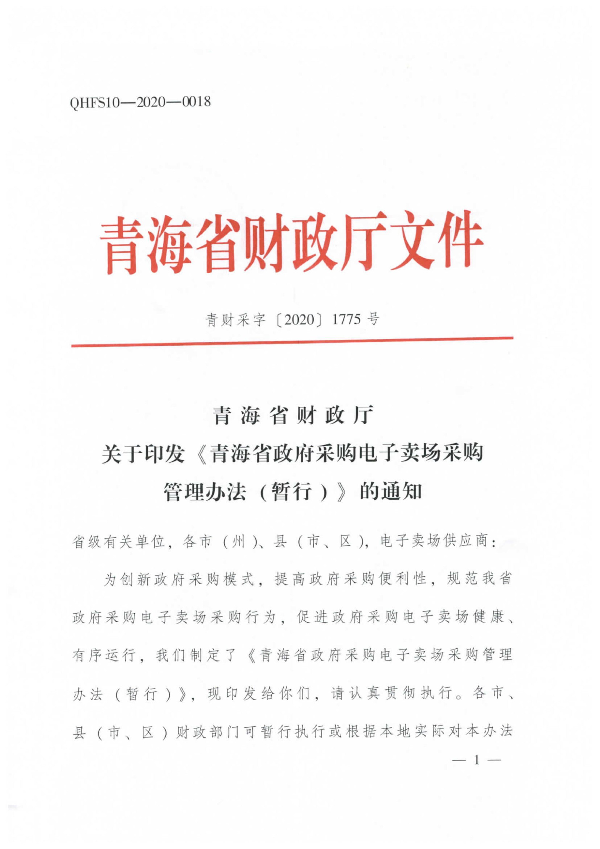 青海省財政廳關于印發《青海省政府采購電子賣場管理辦法(暫行)》的通知
