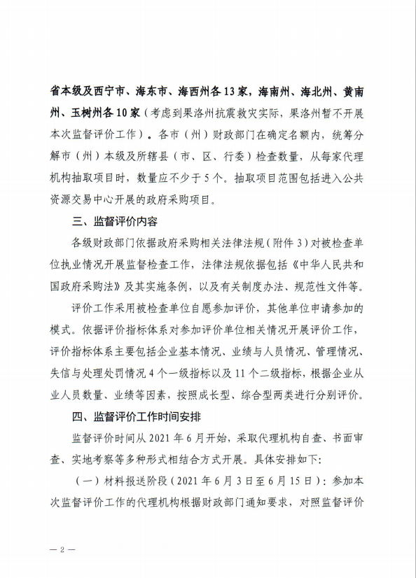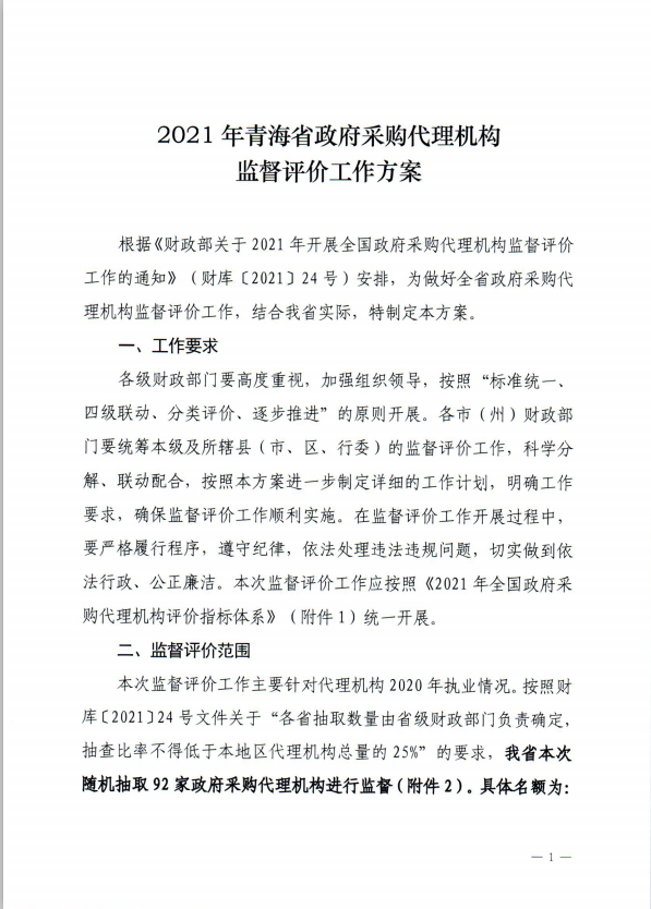 青海省財政廳關于印發《2021年青海省政府采購代理機構監督評價工作方案》的通知