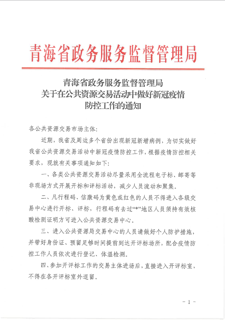 青海省政務服務監督管理局關于在公共資源交易活動中做好新冠疫情防控工作的通知