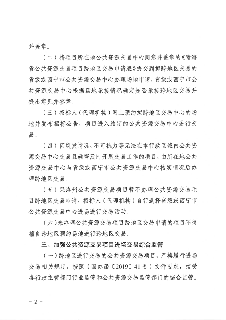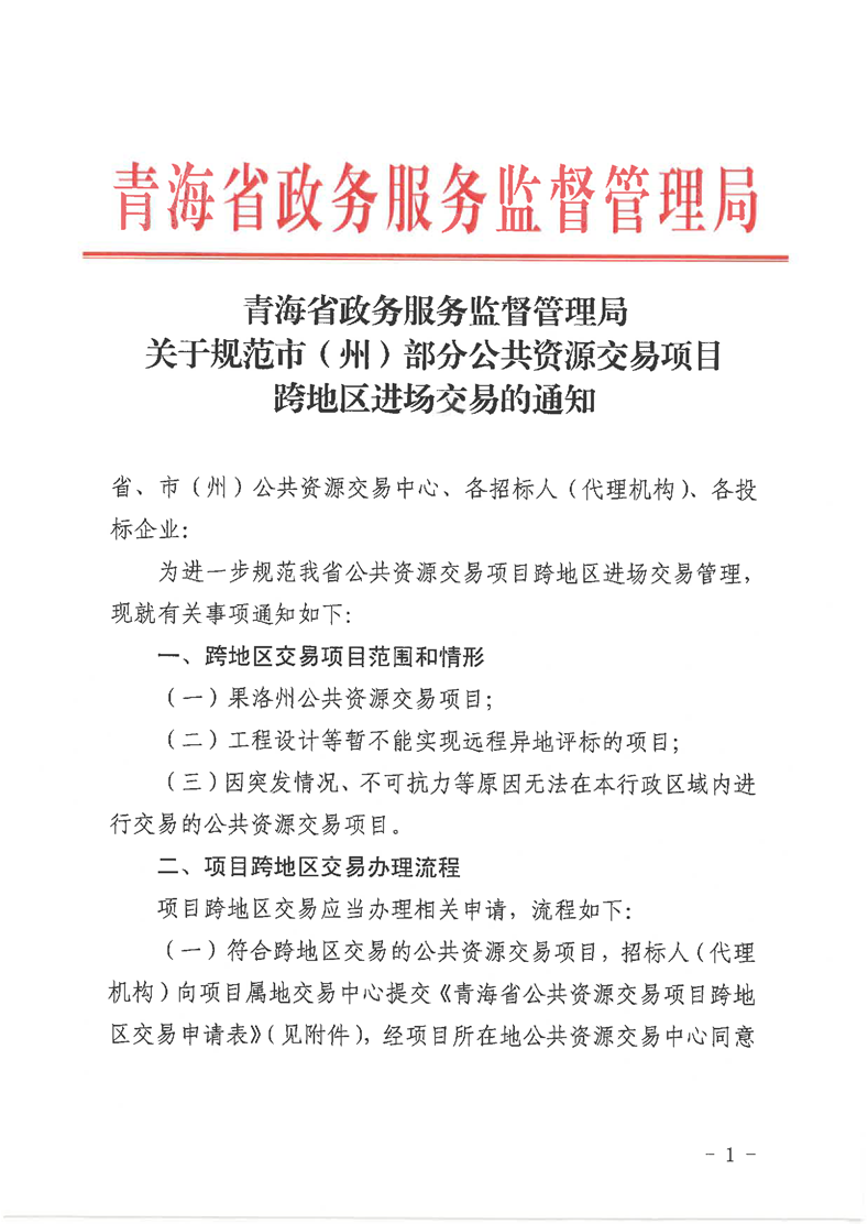 關于規范市(州)部分公共資源交易項目跨地區進場交易的通知