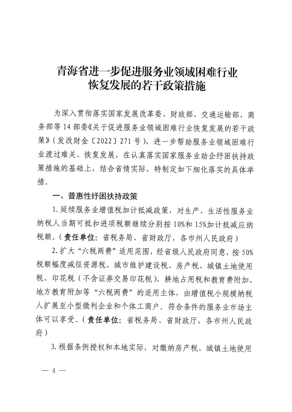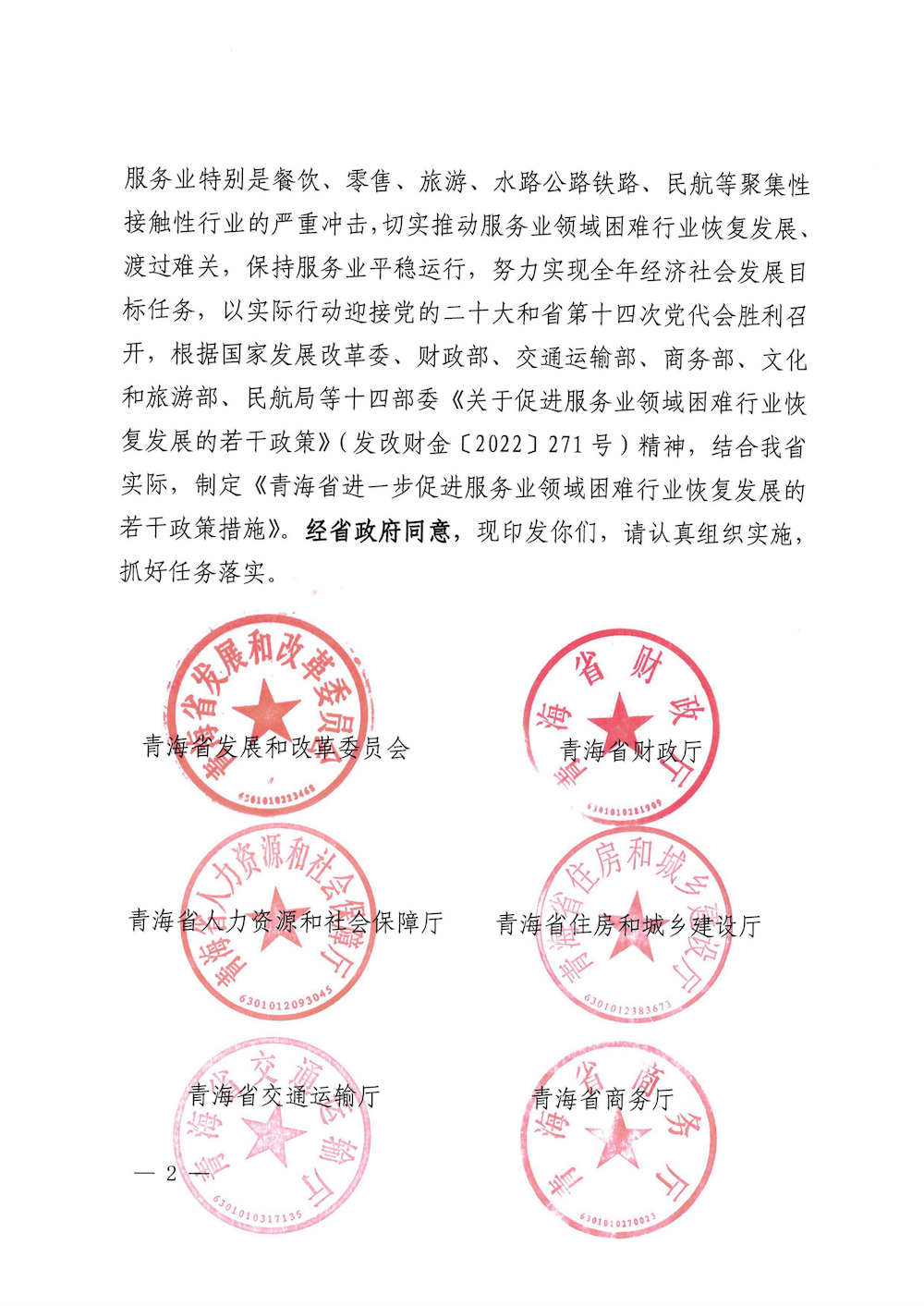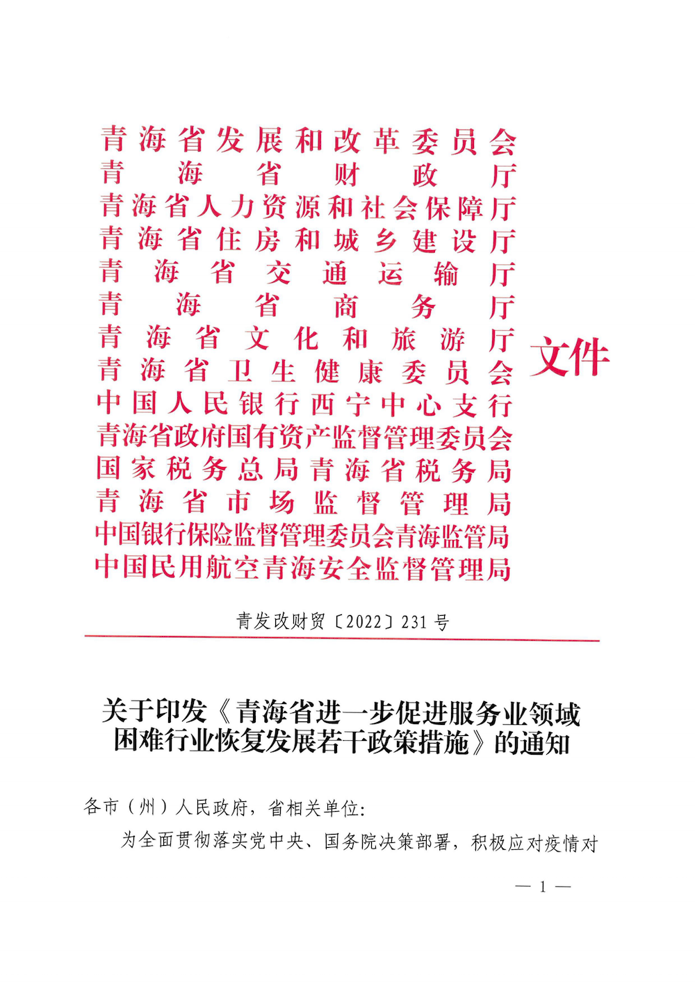 轉(zhuǎn)發(fā)《青海省進一步促進服務(wù)業(yè)領(lǐng)域困難行業(yè)恢復(fù)發(fā)展若干政策》的通知(青發(fā)改財貿(mào)〔2022〕231號)