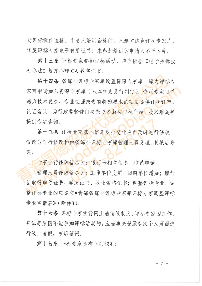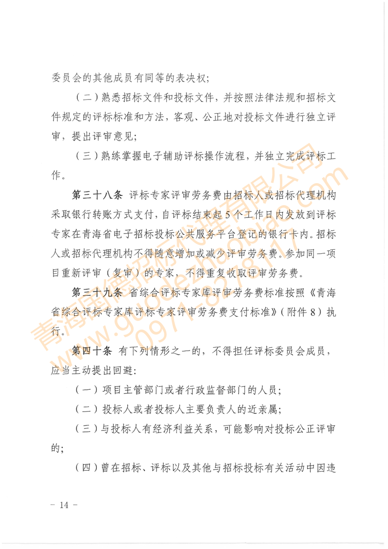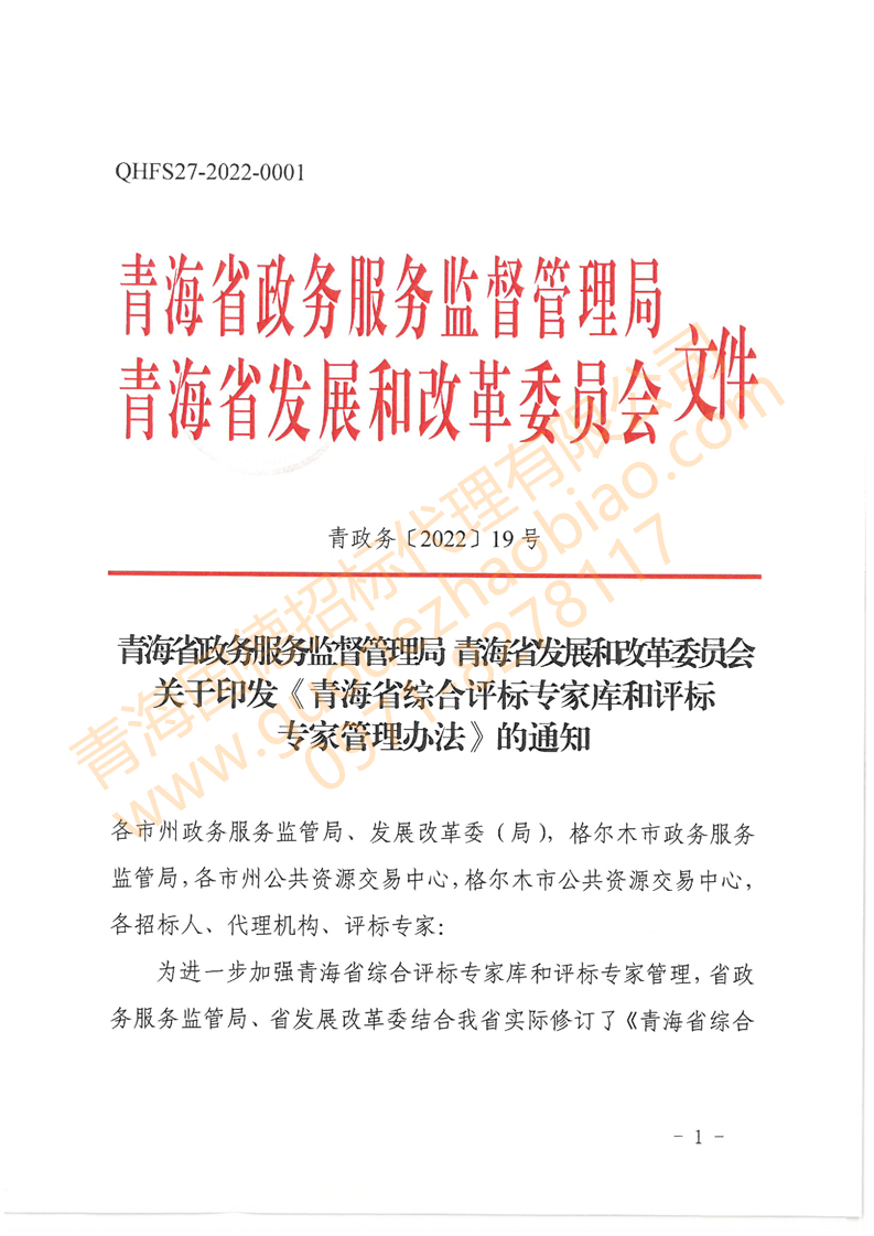 轉發關于印發《青海省綜合評標專家庫和評標專家管理辦法》的通知