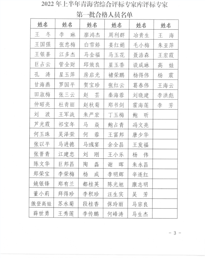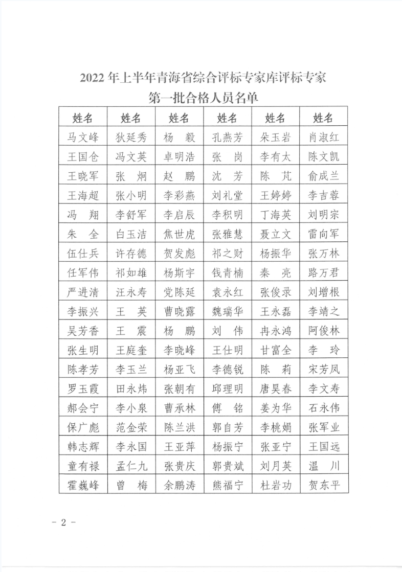 關(guān)于公布2022年上半年青海省綜合評標專家?guī)煸u標專家第一批合格人員名單的通知