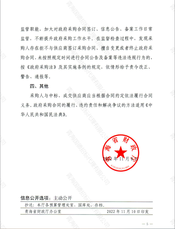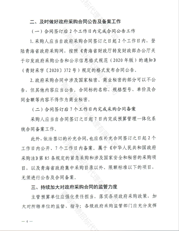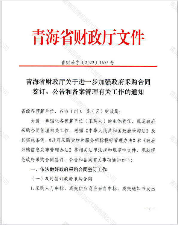 青海省財政廳關于進一步加強政府采購合同簽訂、公告和備案管理有關工作的通知